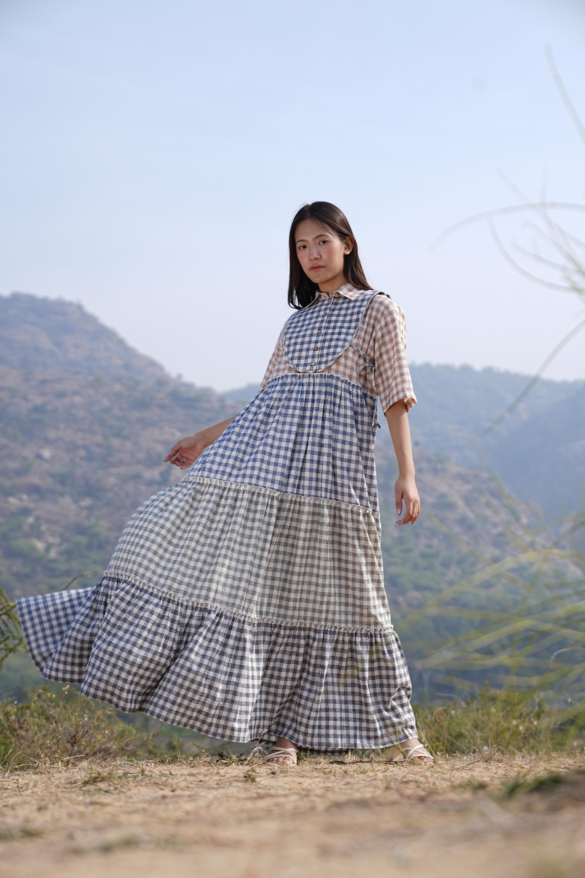 Sutra 4-Check Maxi Dress