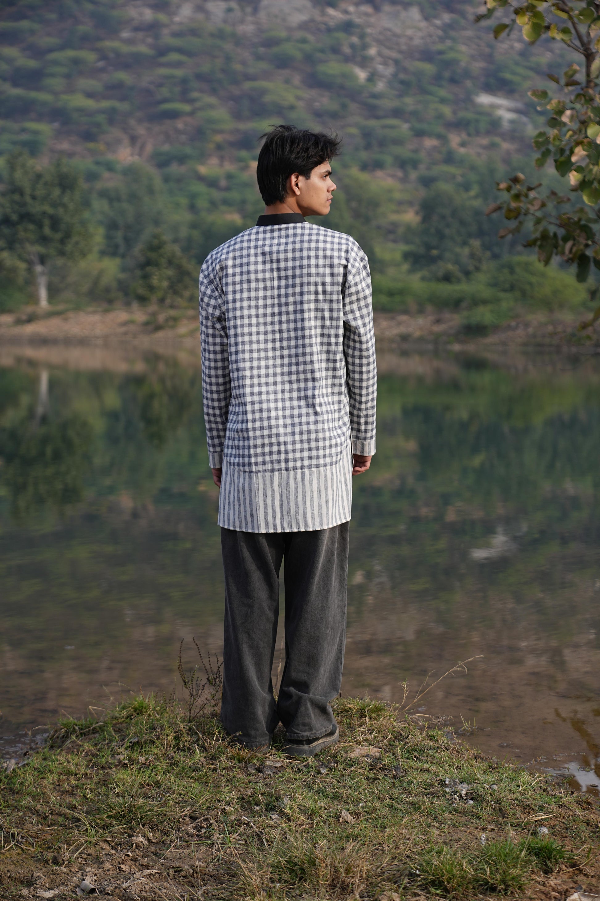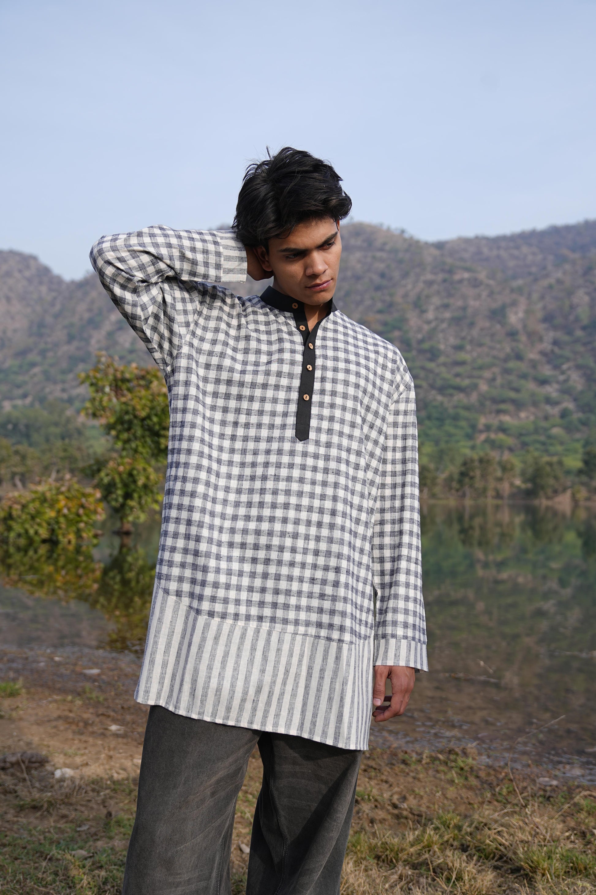 SUTRA | MANDARIN COLLAR CHECK KURTA
