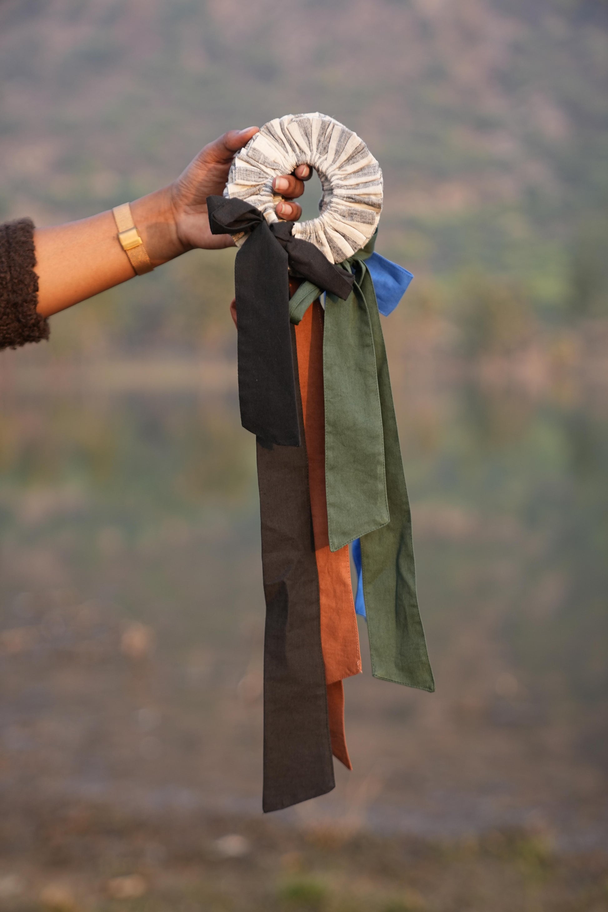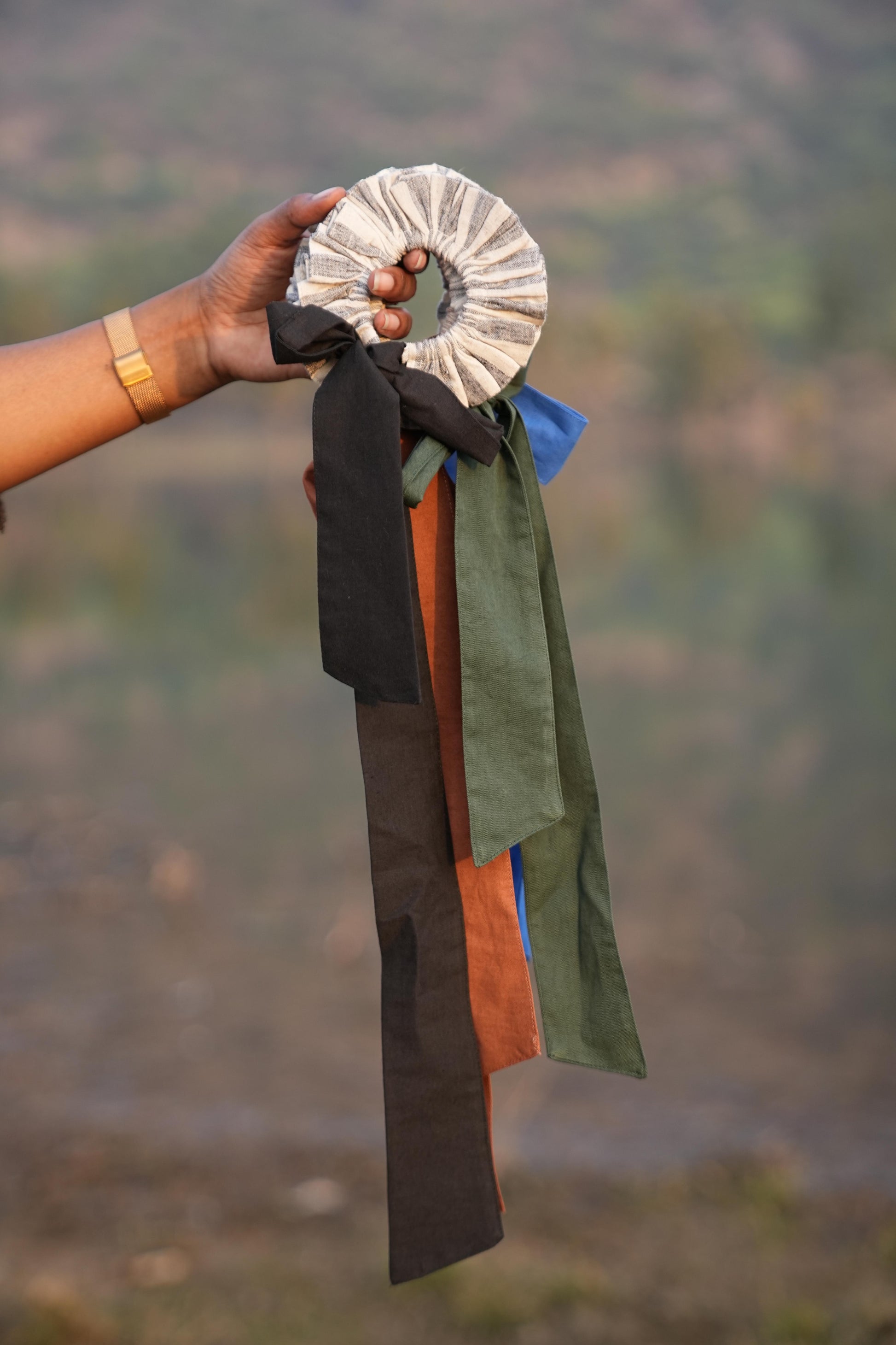 SUTRA scrunchies is thoughtfully handcrafted from the leftover fabric of our main collection to ensure zero waste and a truly sustainable "Sutra" story.